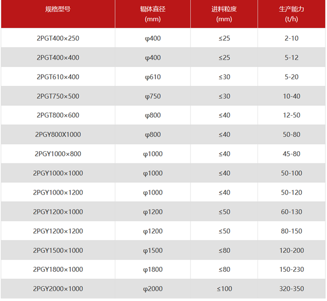 沙頭料對(duì)輥制砂機(jī)規(guī)格型號(hào)參考表如下: