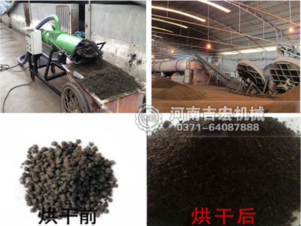 脫水后的濕豬糞經(jīng)過上料機(jī),進(jìn)入烘干滾筒內(nèi)部,經(jīng)過高溫、除臭、除塵、冷卻等過程,把濕豬糞一次性烘干至10%以下的含水量(還可以根據(jù)客戶自己的要求進(jìn)行制作),保證烘干后的豬糞利用效率高。