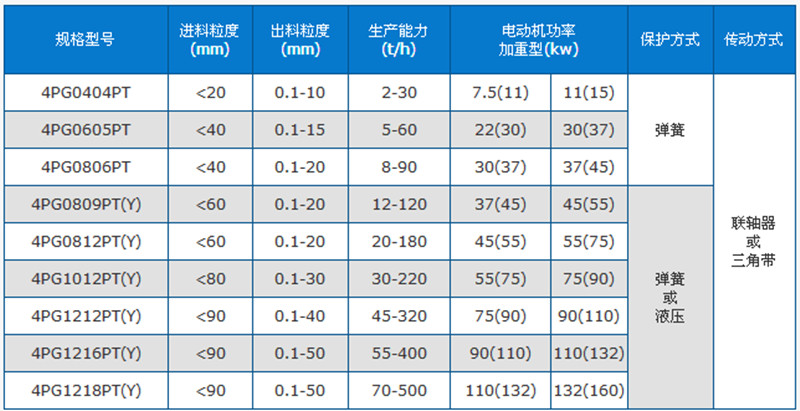 四輥破碎機配置四個碾輥,根據(jù)用戶需要的破碎粒度,分為兩種機型: