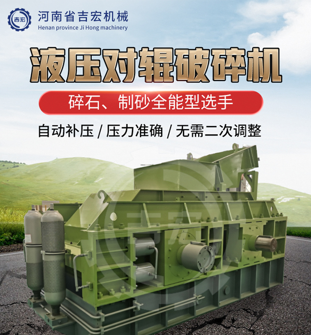 對輥式破碎機將破碎物料經(jīng)給料口落入兩輥子之間,進行擠壓破碎,成品物料自然落下。遇有過硬或不可破碎物時,對輥式破碎機的輥子可憑液壓缸或彈簧的作用自動退讓,使輥子間隙增大,過硬或不可破碎物落下,從而保護機器不受損壞。相向轉(zhuǎn)動的兩輥子有一定的間隙,改變間隙,即可控制產(chǎn)品最大排料粒度。
