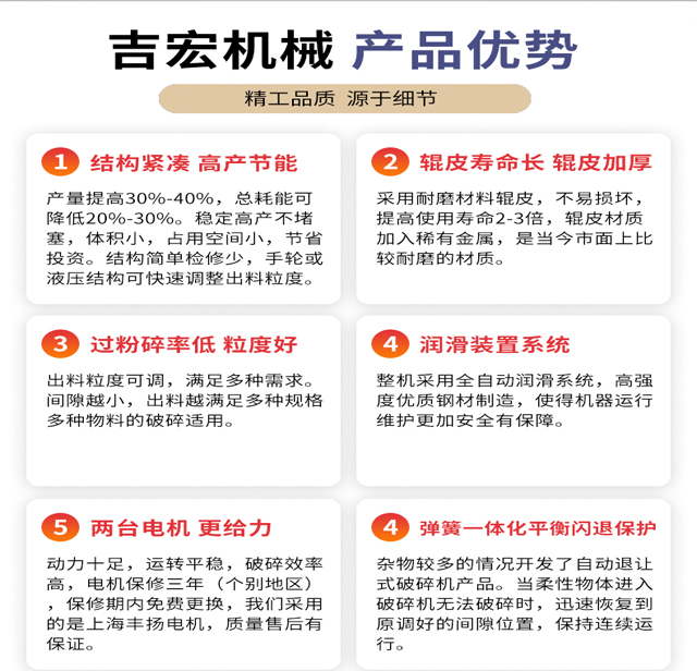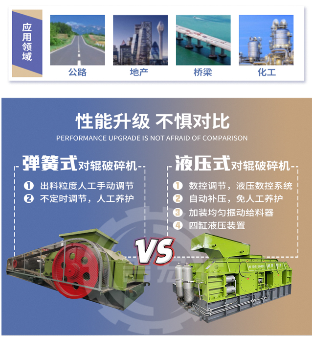 對輥破碎機主要用于礦石粒度小于80mm的細碎作業(yè)。具有體積小、破碎比大、噪聲低、結(jié)構(gòu)簡單及維修方便的優(yōu)點,被破碎物料粒度均勻,過粉碎率低,成品粒度在0.5-40mm。該輥式破碎機適用于水泥、化工、電力、冶金、建材、耐火材料、石灰石等中等硬度材料,以及爐渣、焦炭、煤炭和其他材料碎片的破碎作業(yè)。
