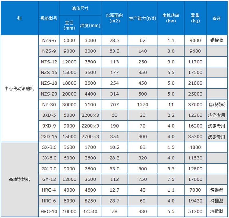 高效濃縮機技術(shù)參數(shù)