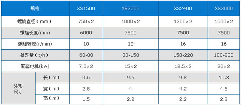 雙螺旋洗砂機處理0-30mm以內的物料,可把物料上的泥土、灰粉,分洗成清潔的物料。本機結構簡單,維修容易,洗選效率高等特點。該雙螺旋洗砂機用于建筑工地、砂石廠、預制廠、選礦廠及水電工地大量用砂石的脫泥、作業(yè)。也可用于礦石選別作業(yè)。